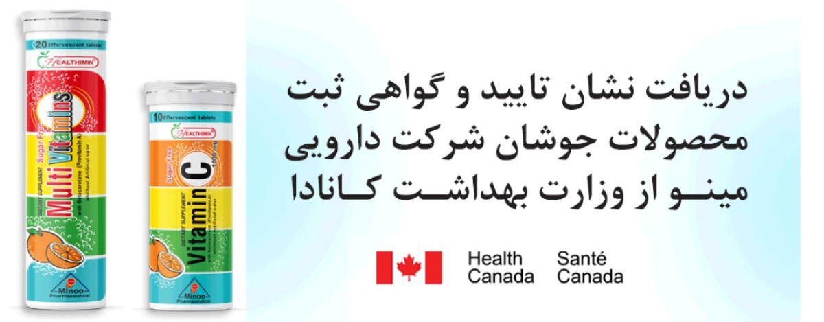 دریافت نشان تایید و گواهی ثبت محصولات جوشان شرکت دارویی مینو از وزارت بهداشت کانادا